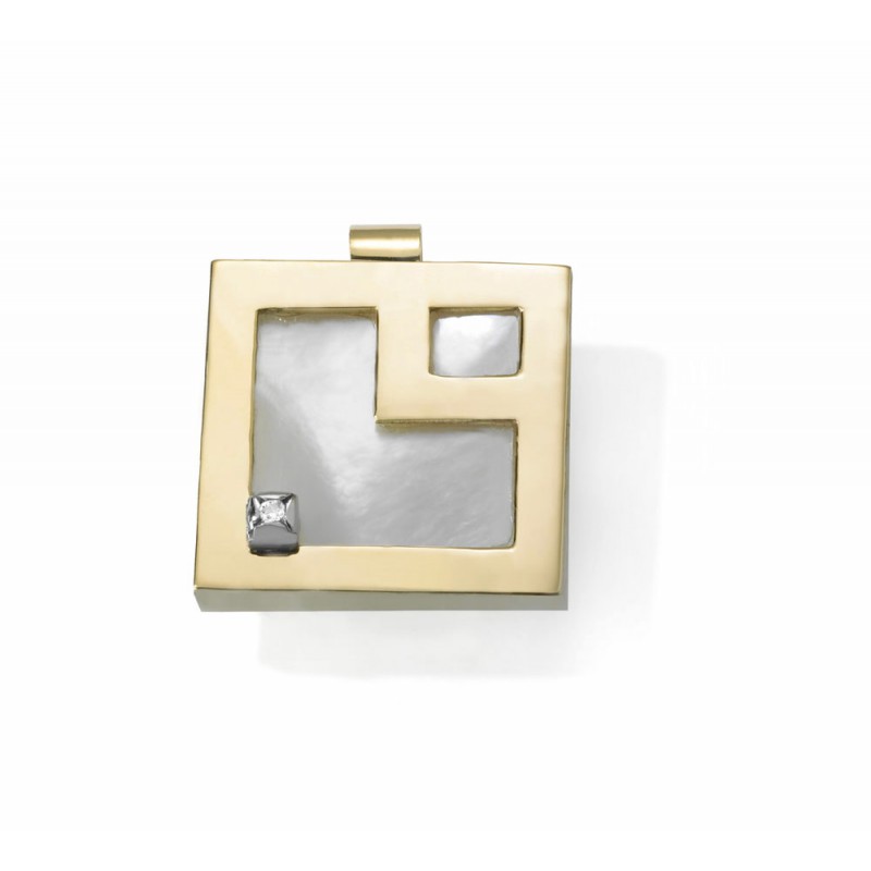 COLGANTE DIAMANTE,MADREPERLA ORO 750 MM.