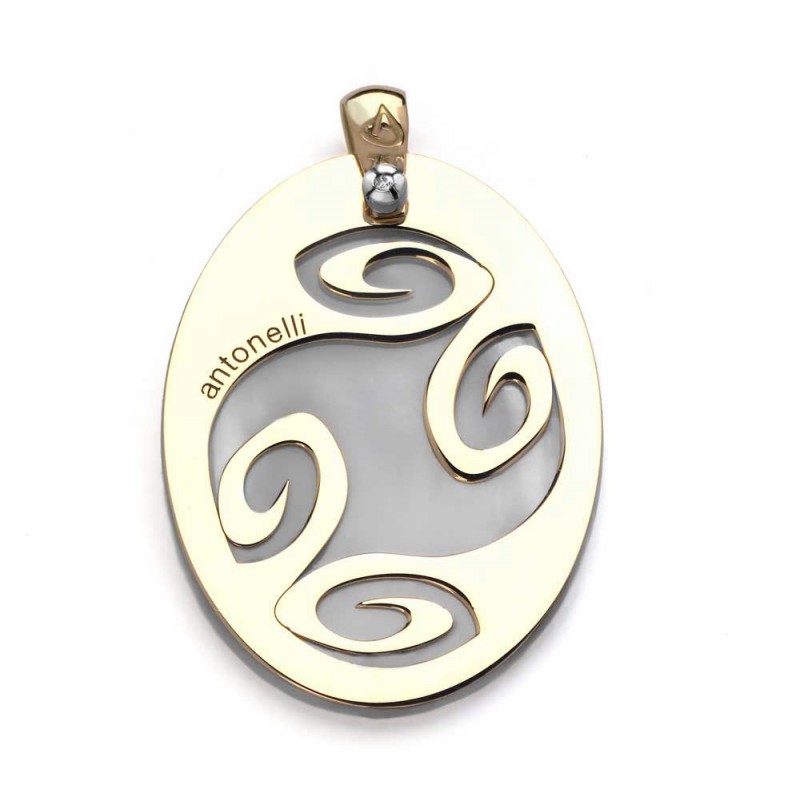 COLGANTE DIAMANTE,MADREPERLA ORO 750 MM.