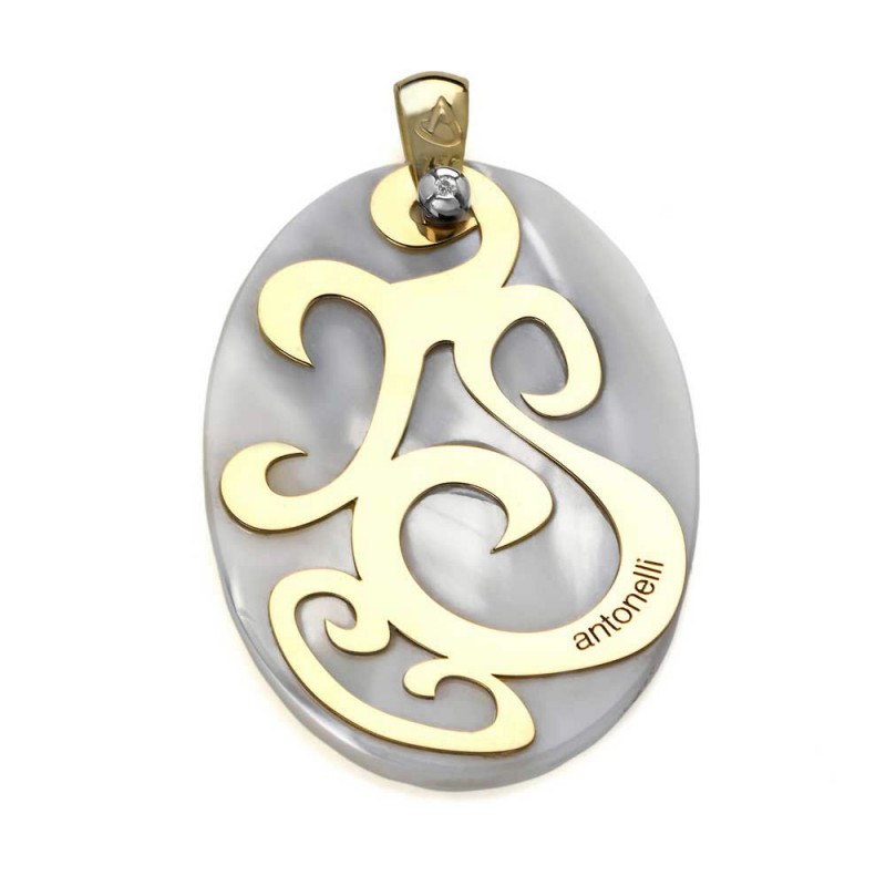 COLGANTE DIAMANTE,MADREPERLA ORO 750 MM.