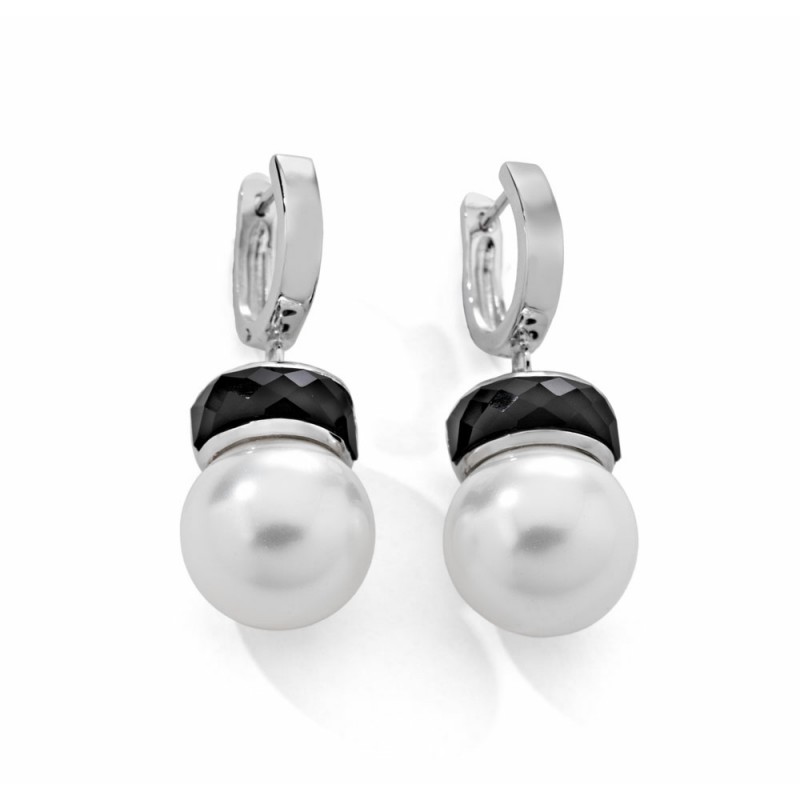 PENDIENTES ONYX Y PERLA, PLATA 925 MM.
